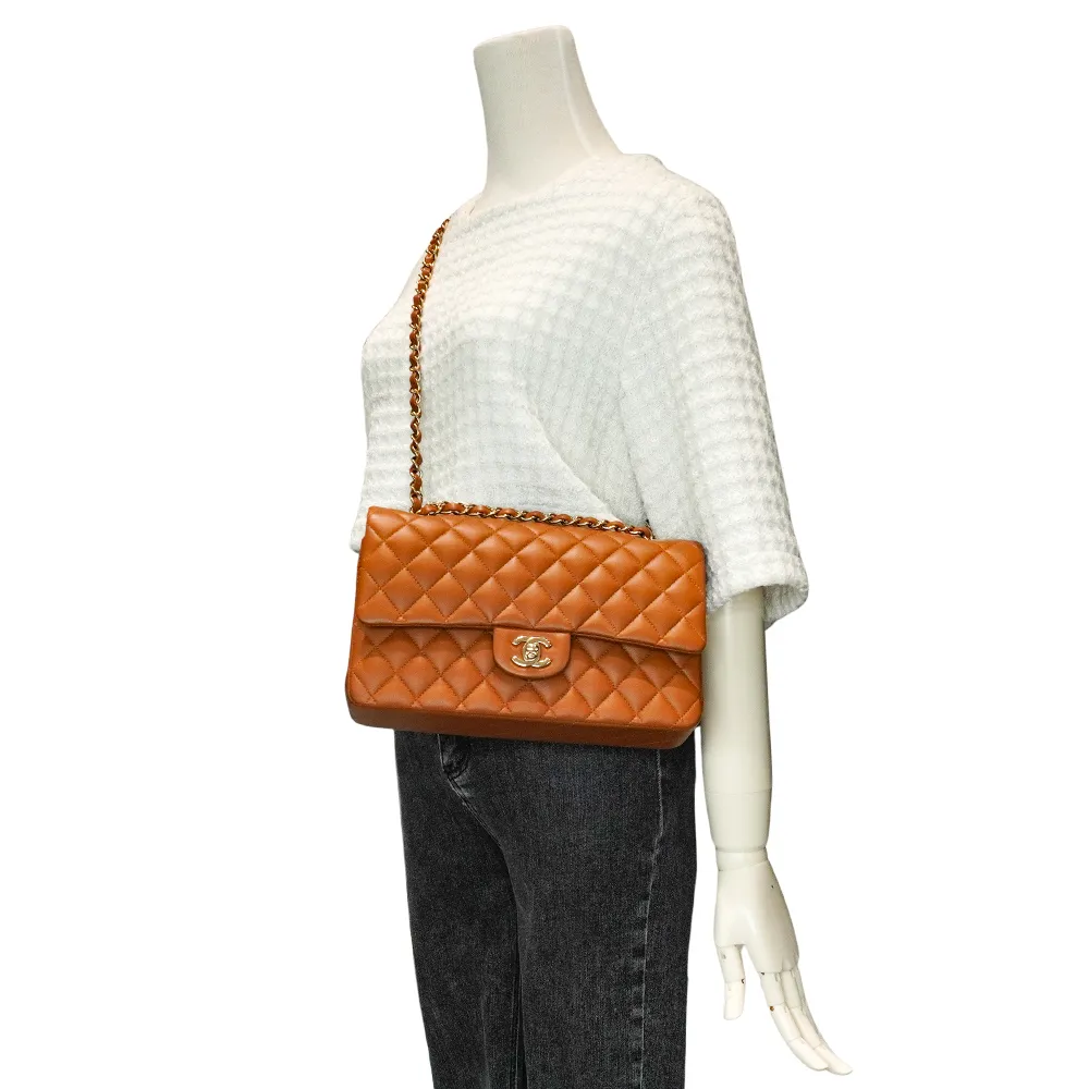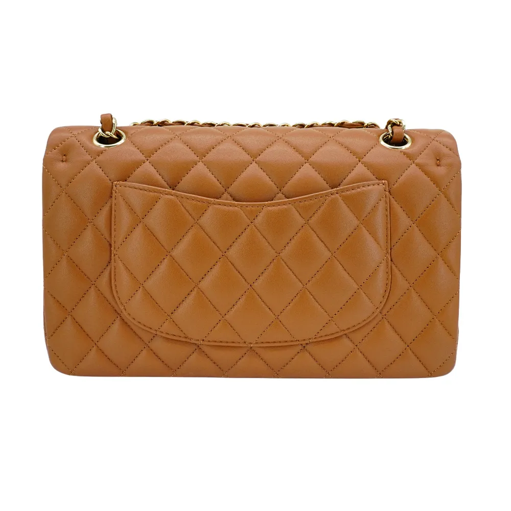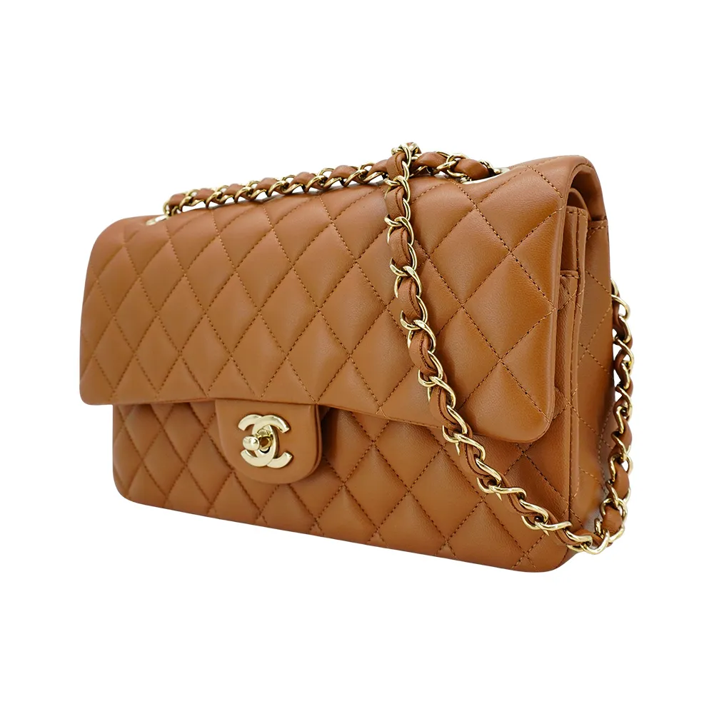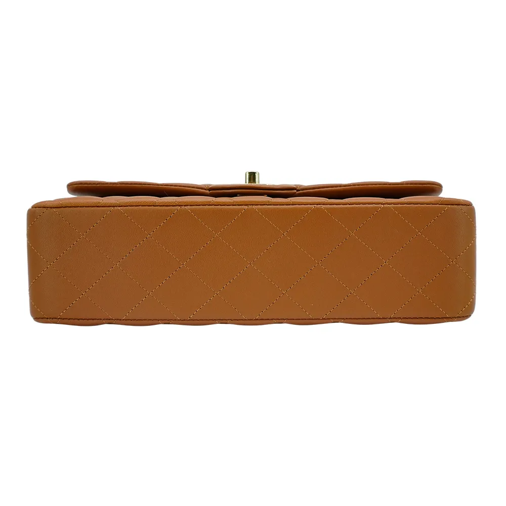 Chanel Coco 雙C菱格羊皮金鍊翻蓋斜背包-25cm(A01112-焦糖棕)