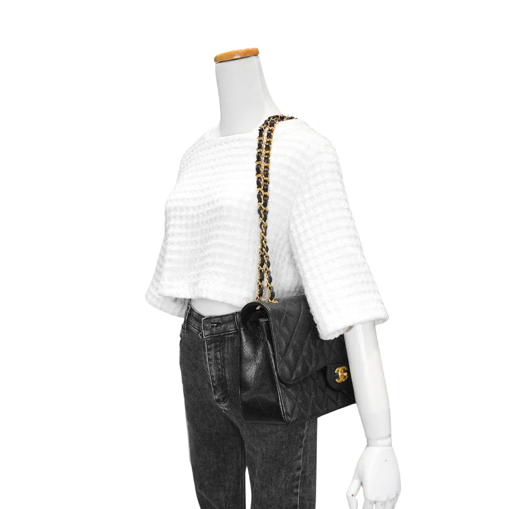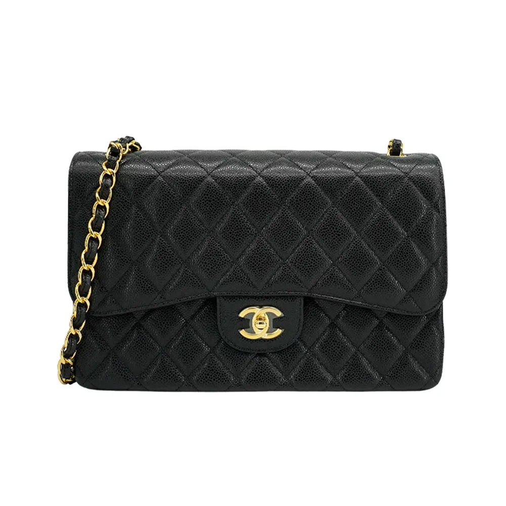 Chanel Jumbo 金雙C 粒紋牛皮斜背包(A58600-黑)