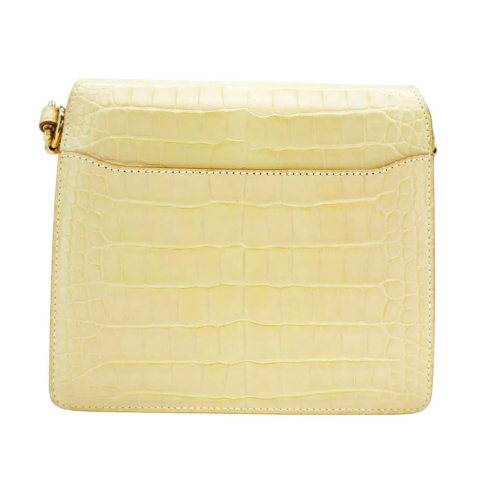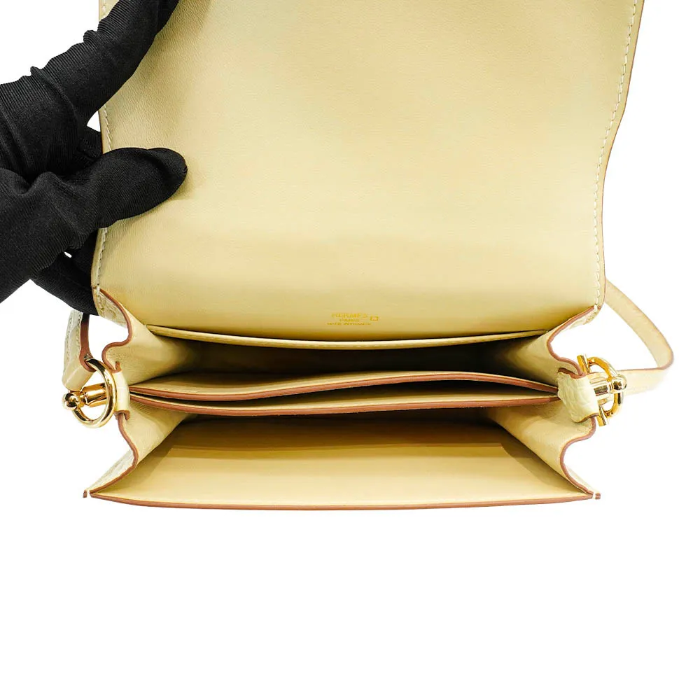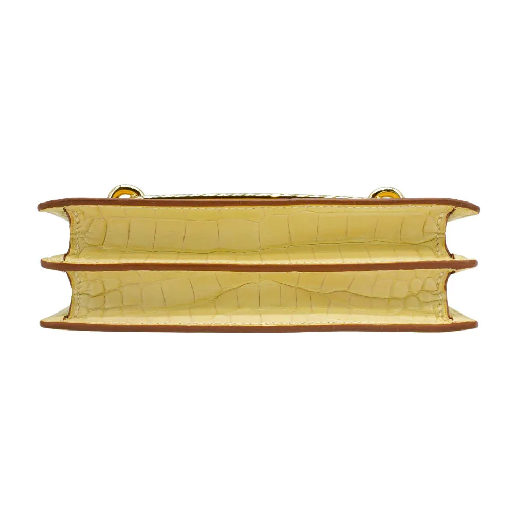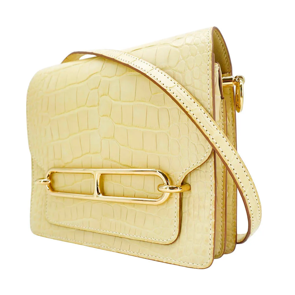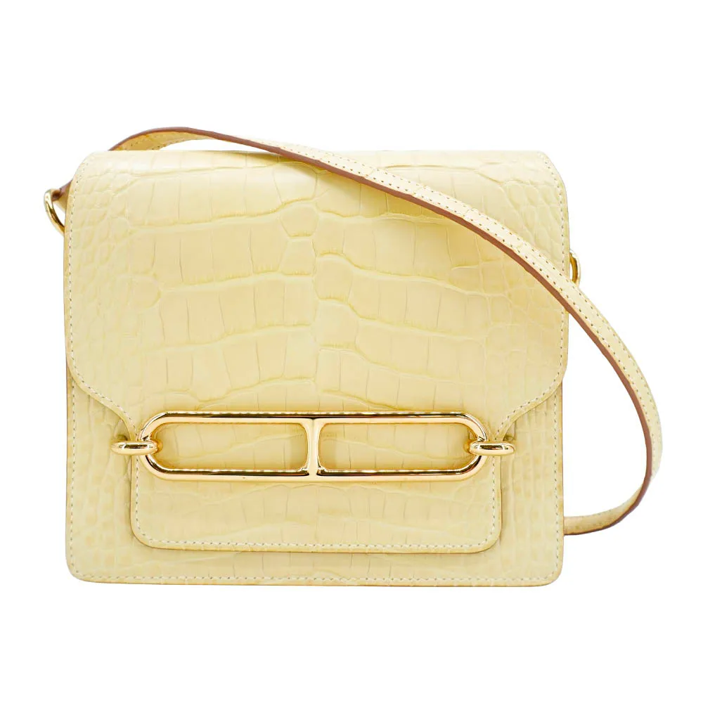 Hermes Roulis Mini 鱷魚皮淡金釦斜背方形包(香草色)
